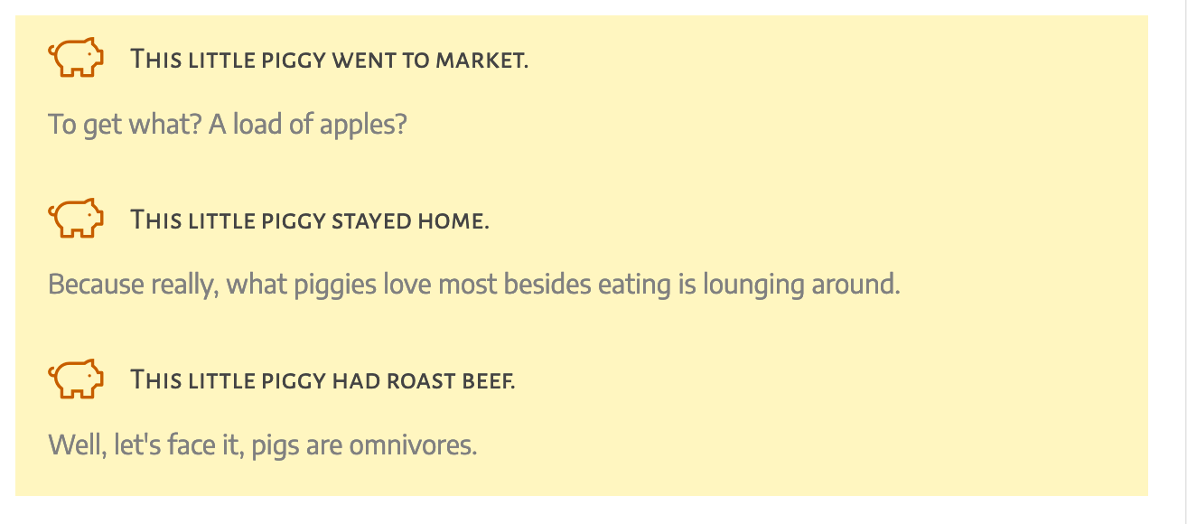 See the settings below for more information about how to control the placement and style of the headings, content, and markers of items.