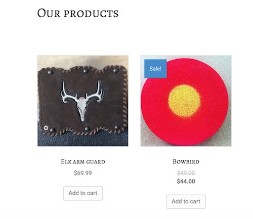 You can display all of your products, or display a subset of products based on various sources, described below. The module displays the products themselves, and in most cases you'll want to add a Heading to describe the set of products you're displaying. For example, in the screenshot below the WooCommerce module displays the products with basic product information, and there's a Heading module above the WooCommerce module that says "Our products."