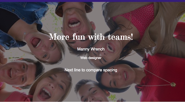 While the difference is subtle, the column group containing the custom field for company title is no longer displayed, and the rest of the text has recentered vertically. The need to hide a row is much more obvious in the following case, where the lack of the custom field value would leave an empty blue band.