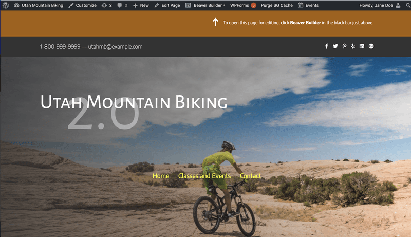 Suppose you want to display a banner at the top of the page with special instructions to editors when they are logged in, showing how to open a page for editing in Beaver Builder, as in this screenshot: